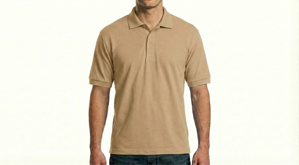 HD Style: Poloshirt – Hellbraun mit deinem Logo – Front & Rücken Druck