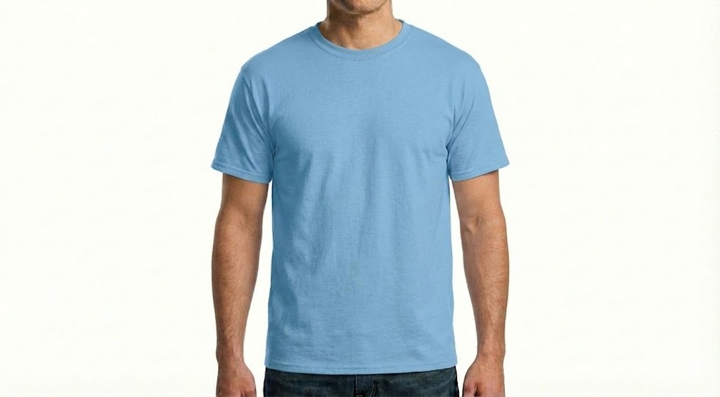 HD Style: T-Shirt – Hellblau mit deinem Logo – Front & Rücken Druck
